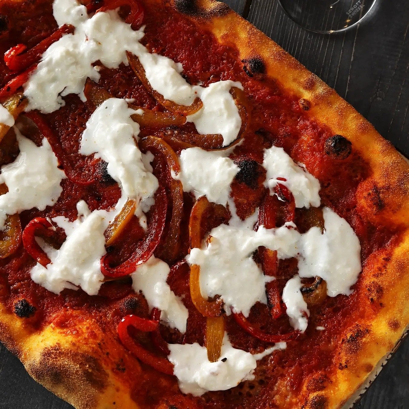 旨みと辛味が凝縮されたサラミペースト「ンドゥイヤ」に、パプリカとトマトソースを合わせ、モッツァレラ「ストラッチャテッラ」が濃厚なコクを加えます。辛いもの好きにはたまらない刺激的な一枚です。