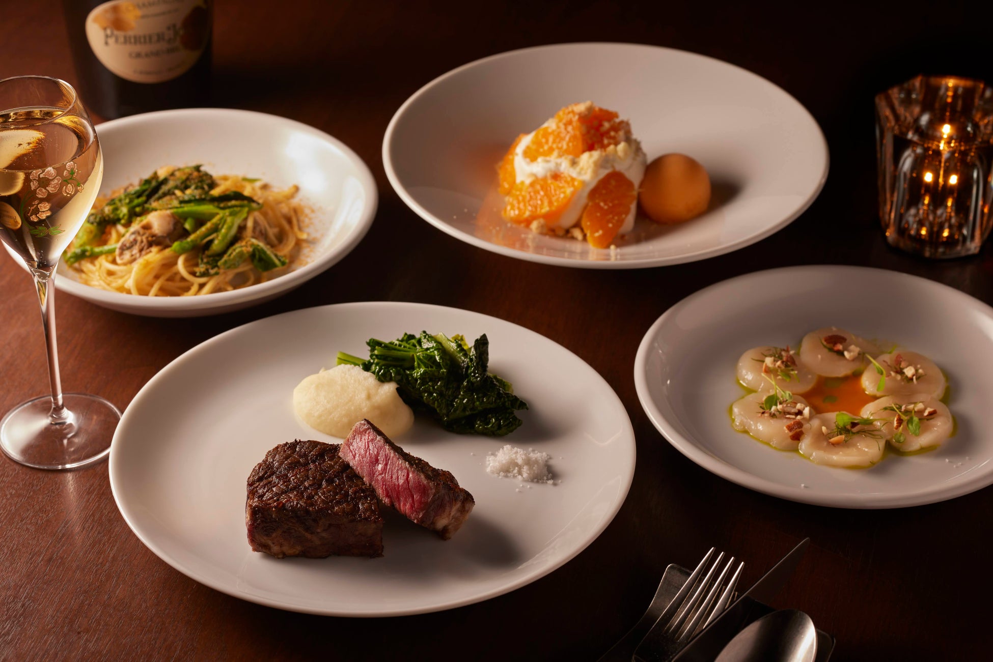 内容:前菜、パスタ、メイン料理、デザートの4品コース