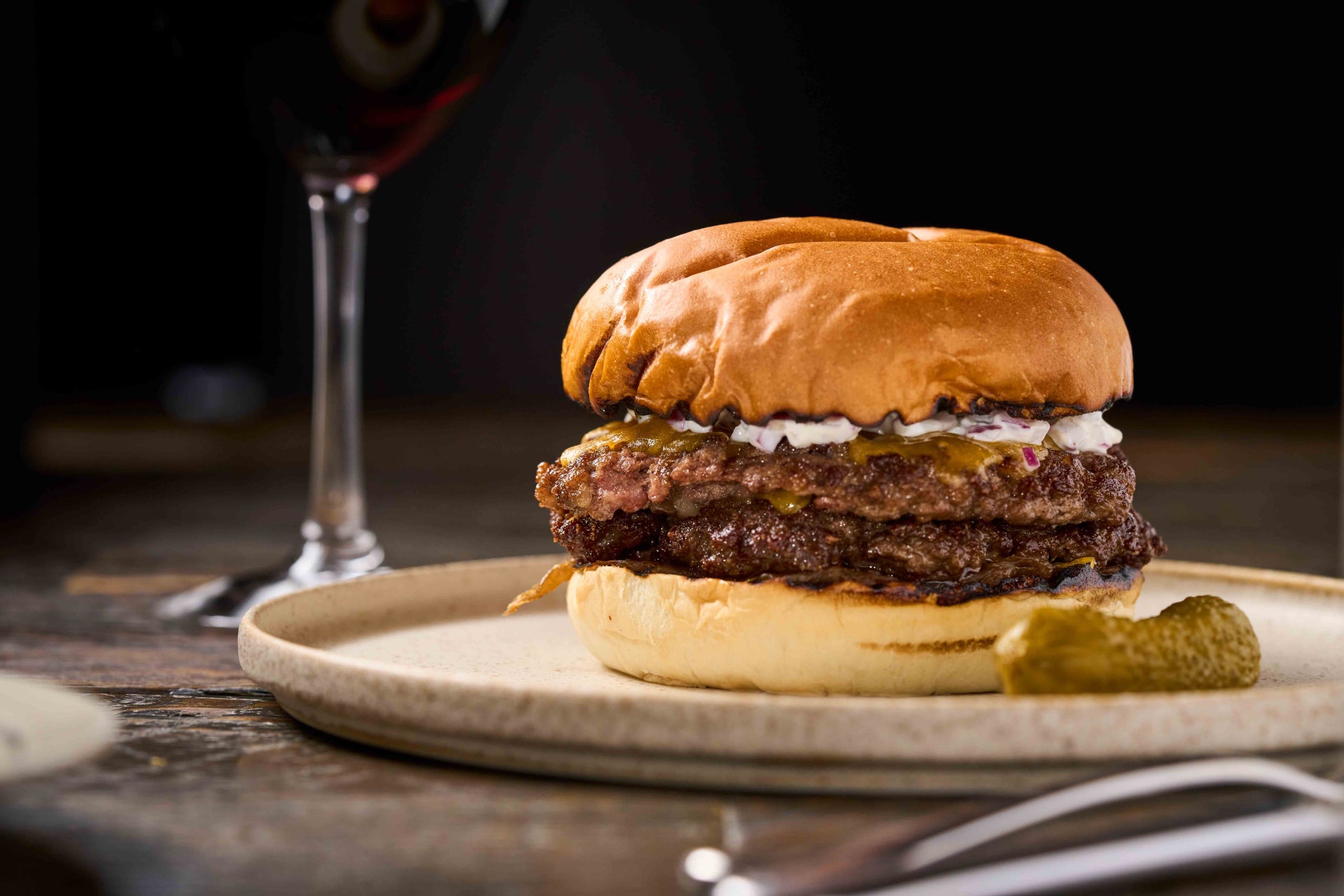 黒毛和牛のパテを贅沢に220グラム使用したダブルチーズバーガーです。特製のオーロラソースと風味豊かなブリオッシュバンズとの相性も抜群です。
