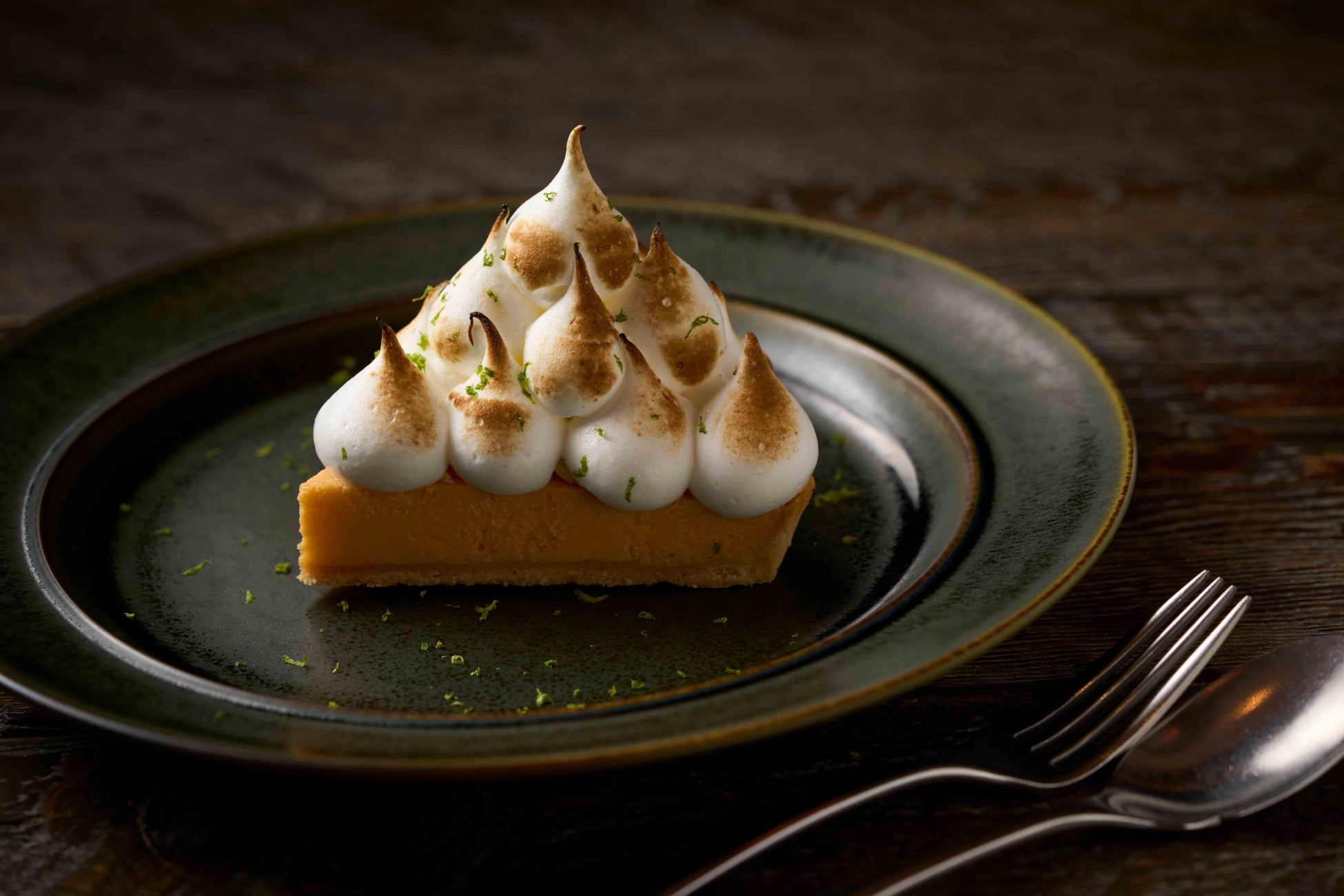 生のキーライムの果汁だけでなく、皮も使用した風味豊かなキーライムパイです。爽やかな酸味が口の中に広がり、食後のデザートにぴったりです。