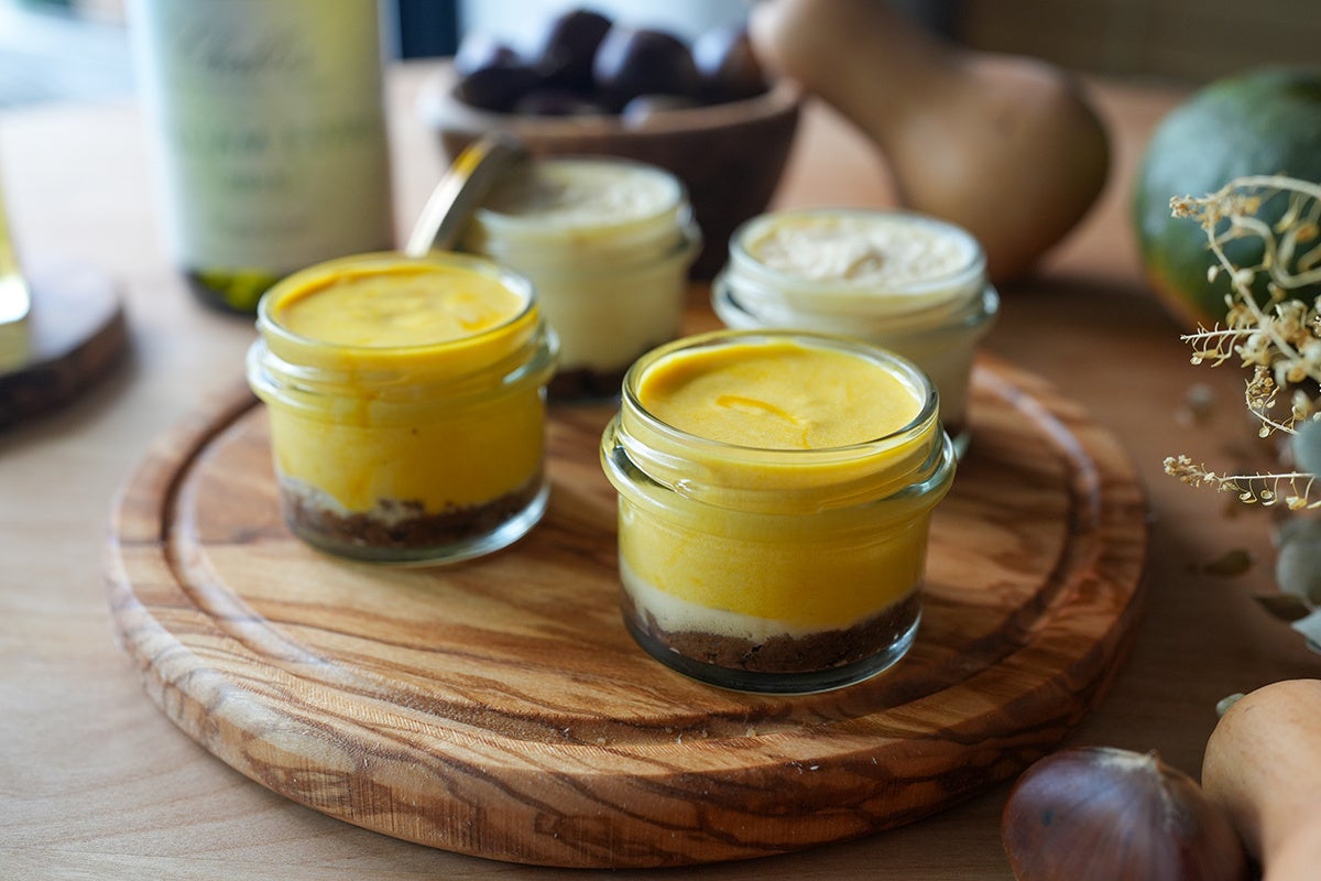 芳醇な香りの黒トリュフと、糖度15度という驚きの甘さを誇る南部一郎かぼちゃを組み合わせた、贅沢なチーズケーキ。しっとりとした食感と濃厚な味わいに、シナモンとナツメグの香りが口の中に広がり、至福のひとときを演出します。ハロウィンパーティーの主役になること間違いなし!