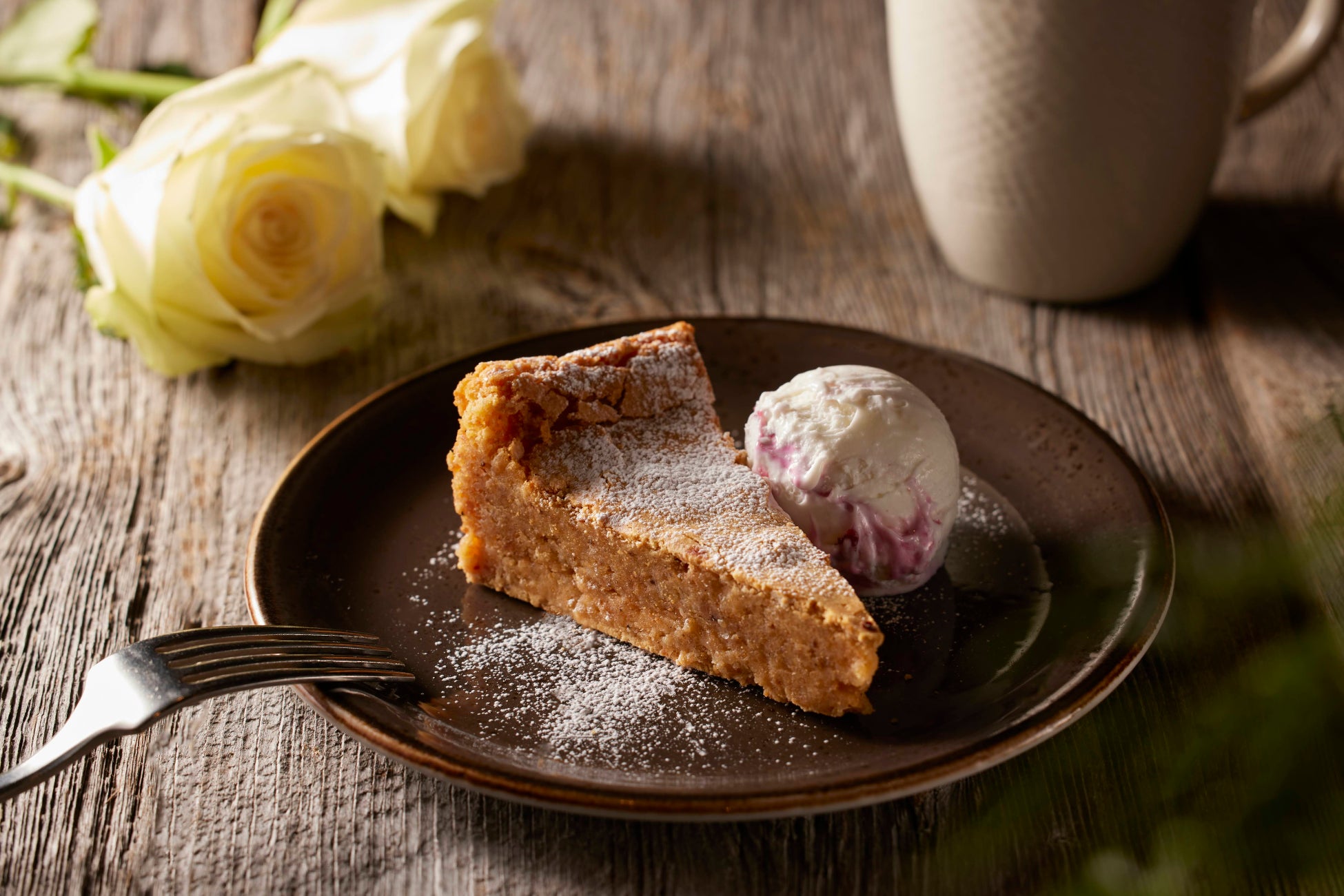 Torta Caprese, a gluten-free cake originating from the island of Capri in southern Italy, is now available in a white chocolate version just for White Day. Torta Caprese Bianco is made without any flour, using only chocolate and almonds, and has an elegant taste reminiscent of the white scenery of Capri. Enjoy the exquisite harmony of the rich sweetness of the white chocolate and the accompanying cold gelato. This simple yet sophisticated dish is the perfect gift for a special someone on White Day.
