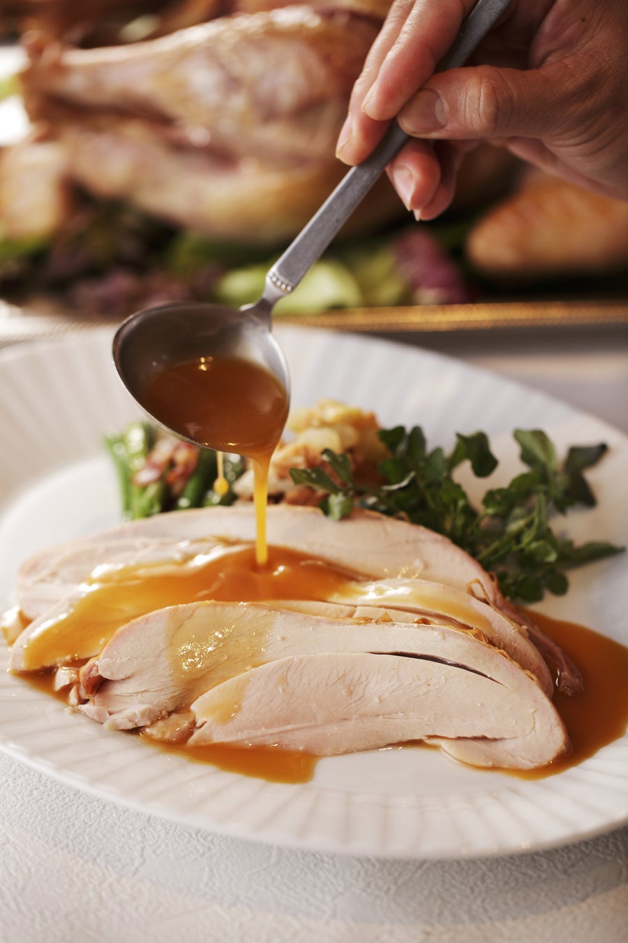 ・Leaf lettuce salad, shredded Gruyere cheese & truffles, cornbread croutons, anchovy dressing ・Clam chowder soup ・Roasted turkey, apple gravy, cranberry relish