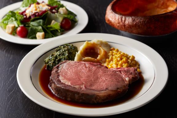 ロウリーズ・ザ・プライムリブでは、アメリカンスタイルのローストビーフ(プライムリブ)をご用意します。オリジナルスパイスでマリネした上質な骨付き牛肉を2~3時間かけてじっくり焼き上げ、旨味を閉じ込め柔らかく仕上げます。