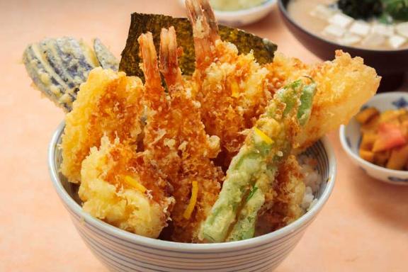 厳選した素材と豪快な盛り付けが自慢の天丼専門店