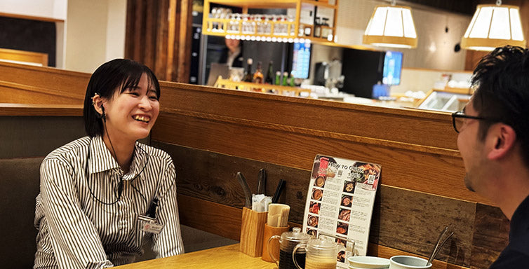 1on1こそ、ワンダーテーブルの文化です。役員と年2回の「TOP面談」、上司との「フィードバック面談」。仕事の話から、プライベートな相談まで、必ず目線をあわせてコミュニケーションを取ります。