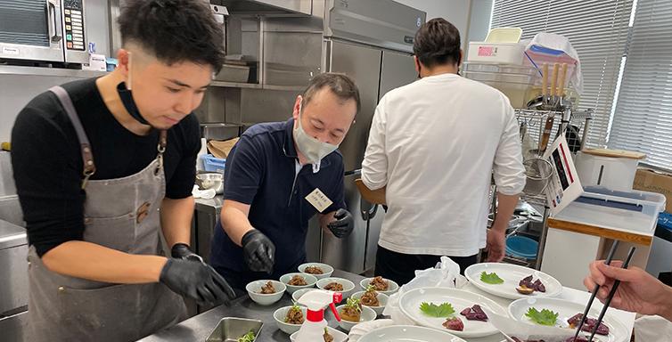 ワンダーテーブルでは、2つのタイプの研修があります。1つは座学を中心としたトレーニングライン研修。自分のスキルや今後の目標にあわせて、マネジメントやコミュニケーションなど、知識拡充のために参加する研修です。2つ目は体験型研修。実際に商品を提供していただいてる生産者のもとで、農作業体験を行ったり、商品に触れることができます。店舗で使用している食材などを直接目の当たりにすることで、生産者の苦労を知り、安全・衛生の知識を高めます。